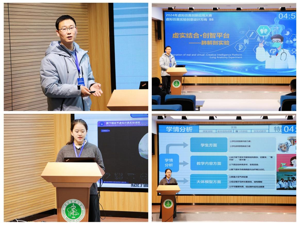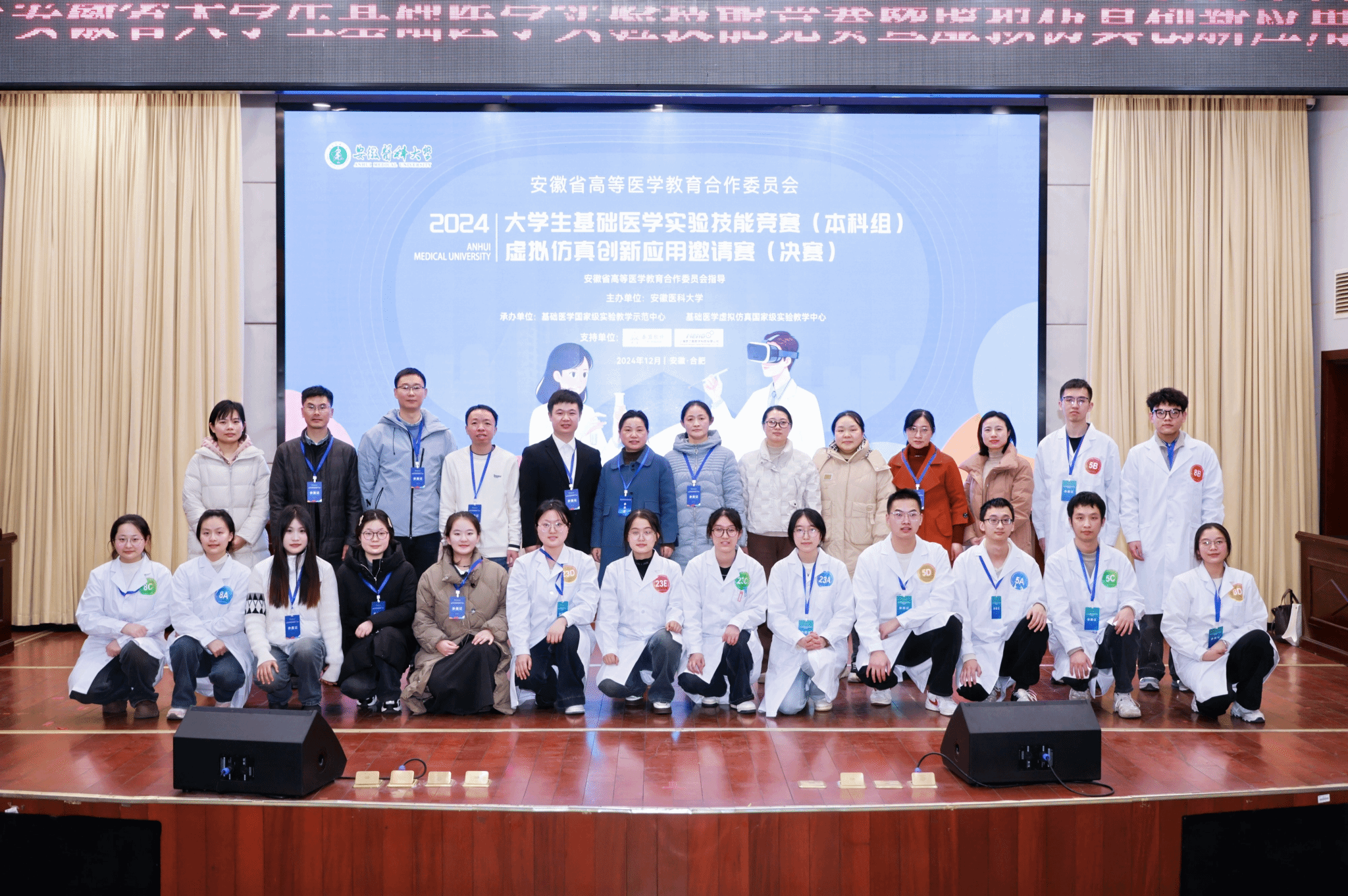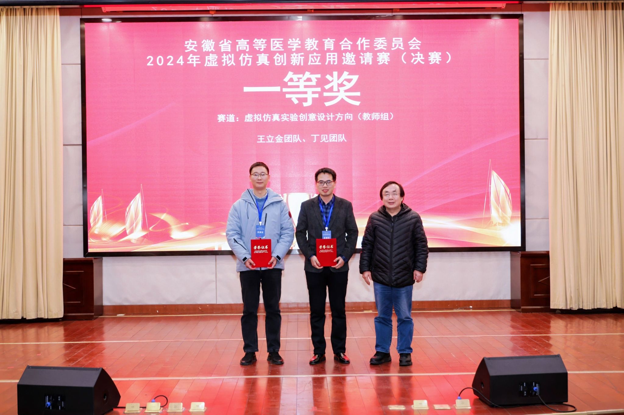 为进一步深化实验教学改革,加快推进虚拟仿真技术在实验教学的应用,促进多学科交叉融合,12月28日,由安徽省高等医学教育合作委员会主办、安徽医科大学承办的安徽省2024年虚拟仿真创新应用大赛在合肥举办,副院长文育锋带队参加比赛。经专家评审和现场答辩,我校师生凭借扎实的专业功底、创新的设计理念以及出色的现场发挥,从来自全省相关院校的35支参赛队伍中脱颖而出,获一等奖2项(其中教师组1项、学生组1项)、二等奖5项、三等奖2项。
