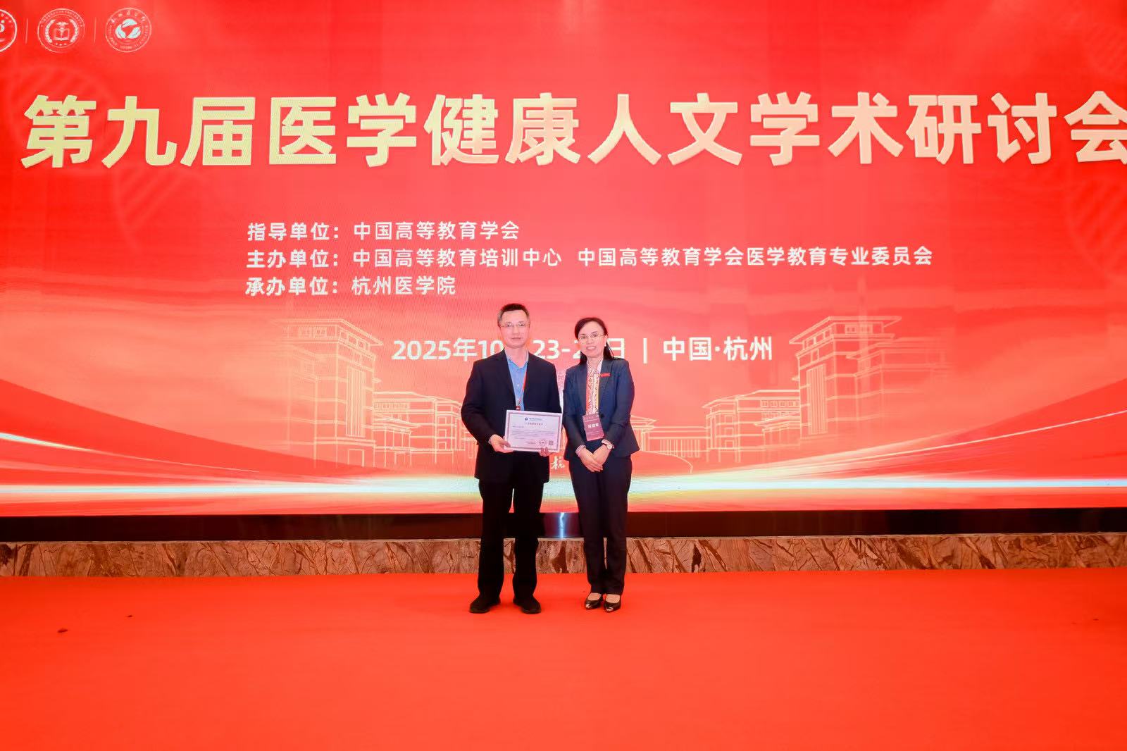 10月24日,由中国高等教育培训中心、中国高等教育学会医学教育专业委员会主办,杭州医学院承办的第九届全国医学健康人文学术研讨会在杭州市举行,来自医学健康人文领域的众多专家学者、行业精英齐聚一堂,共襄这场学术盛宴。学校党委常委、副院长余结根带队参会并作专题报告。