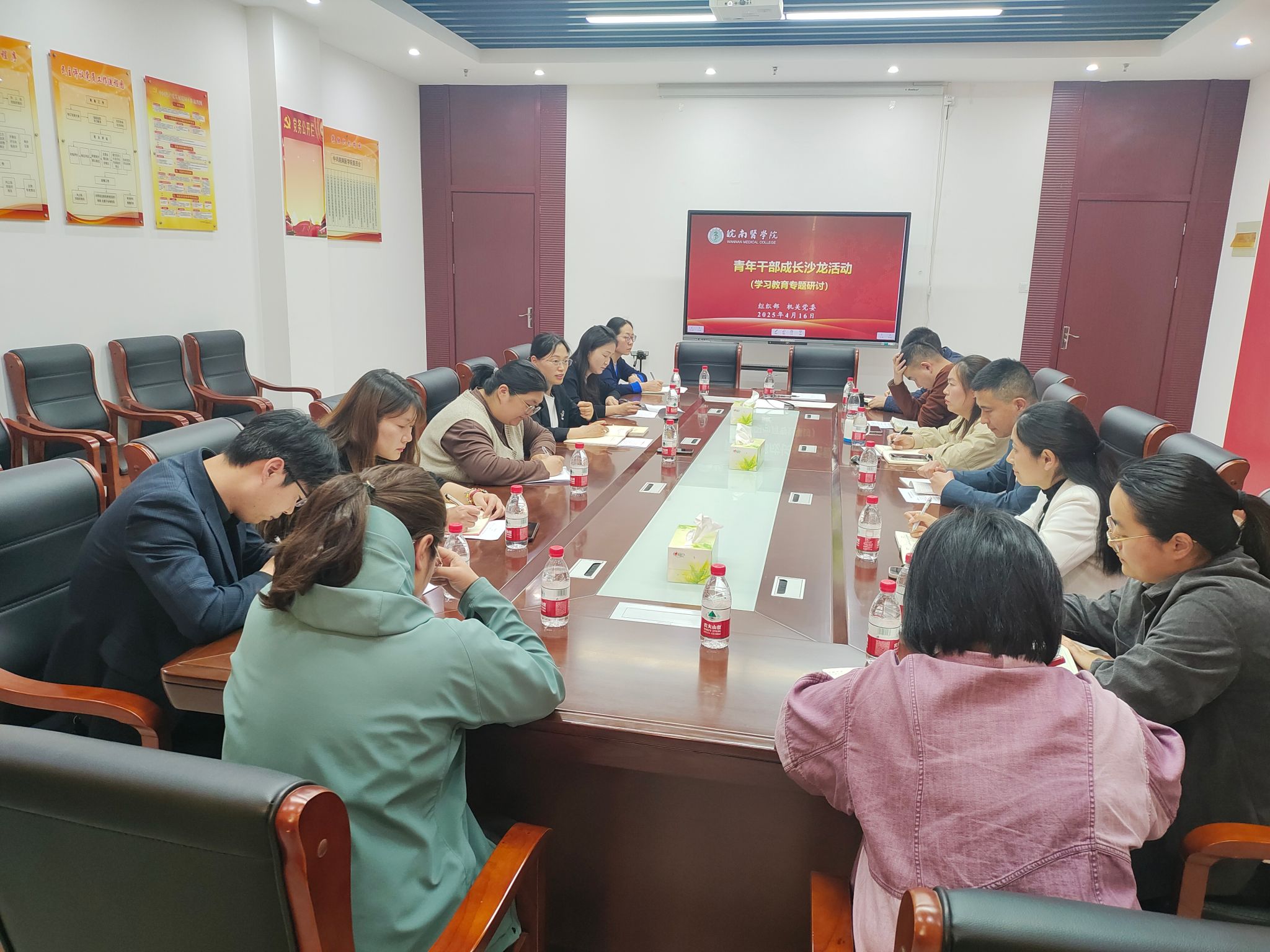 4月16日,组织部与机关党委联合举办青年干部成长沙龙暨深入贯彻中央八项规定精神学习教育专题研讨活动。活动由机关党委书记、组织部副部长任苔蓉主持,14名机关青年干部参与。