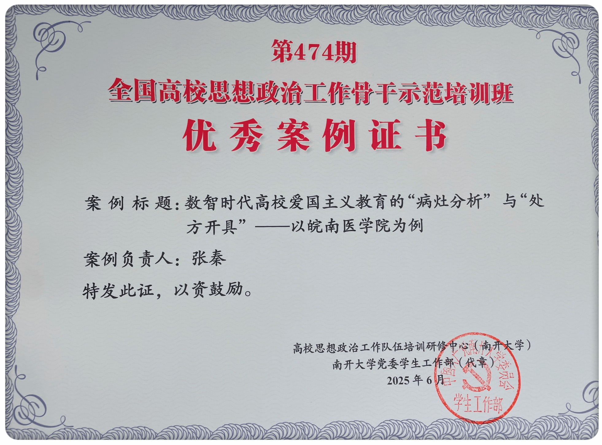 此次示范培训班聚焦数智时代背景下高校爱国主义教育的新挑战与新机遇,专家学者围绕数字化技术在思政教育中的应用、新时代爱国主义教育的创新路径等主题展开深入研讨,为高校思政工作者提供了前沿的理论知识和宝贵的实践经验。张秦的案例分享,以“基础医学院的思政案例”作为主题主线,结合学校在数智时代开展爱国主义教育的实际情况,从问题剖析到解决方案的实施,以详实的数据和生动的案例,展现了我校在数智时代爱国主义教育领域的积极探索,赢得了与会代表的广泛好评。