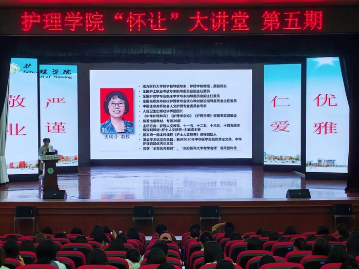 4月27日上午,全国护士执业考试专家指导委员会副主任委员、南方医科大学护理学院史瑞芬教授应邀做客“怀让”大讲堂。护理学院600余名师生参加报告会,护理学院院长李远珍主持报告会。
