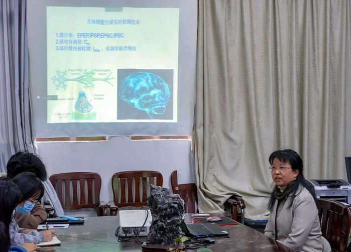 黄宏平以《在体细胞分泌检测技术在神经系统功能研究中的应用》为题,介绍了我国脑科学研究前沿领域的攻关项目等背景,并通过介绍自己的课题研究工作,分享了单胺类神经递质(如去甲肾上腺素、5-羟色胺等)的碳纤微电极检测技术所需要的实验装置、实验标本、实验方法,以及相关技术在应激所致抑郁症、高血压等疾病动物模型研究中的应用。