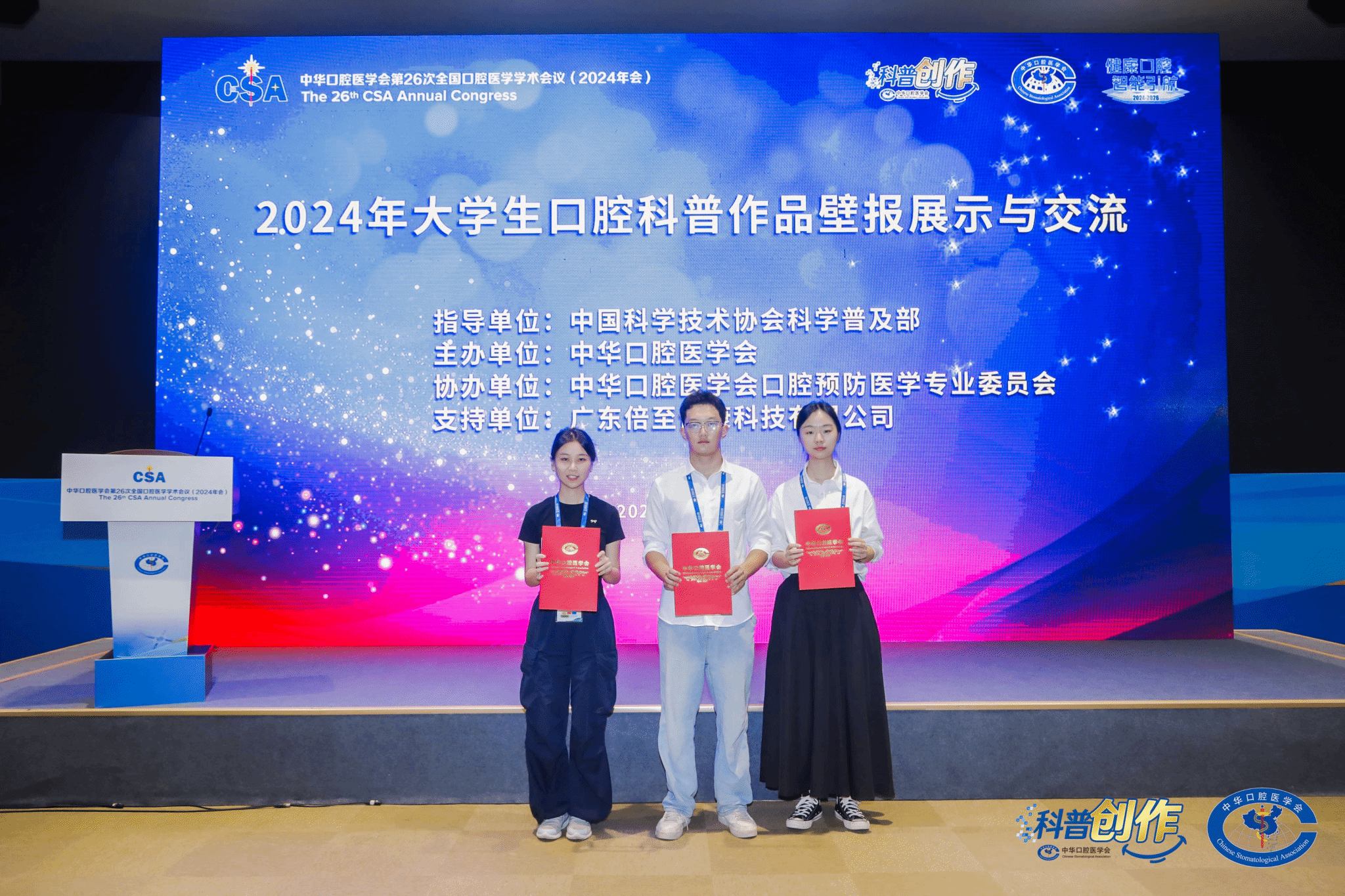 活动发布后,我校口腔医学院组织学生踊跃参与,认真打磨作品,多位学生的科研及科普壁报被会议录用,并以壁报形式在现场展出。其中朱媛媛、万卓函两名同学在“2024年大学生口腔科普作品创作与传播活动”中获得二等奖并现场汇报。