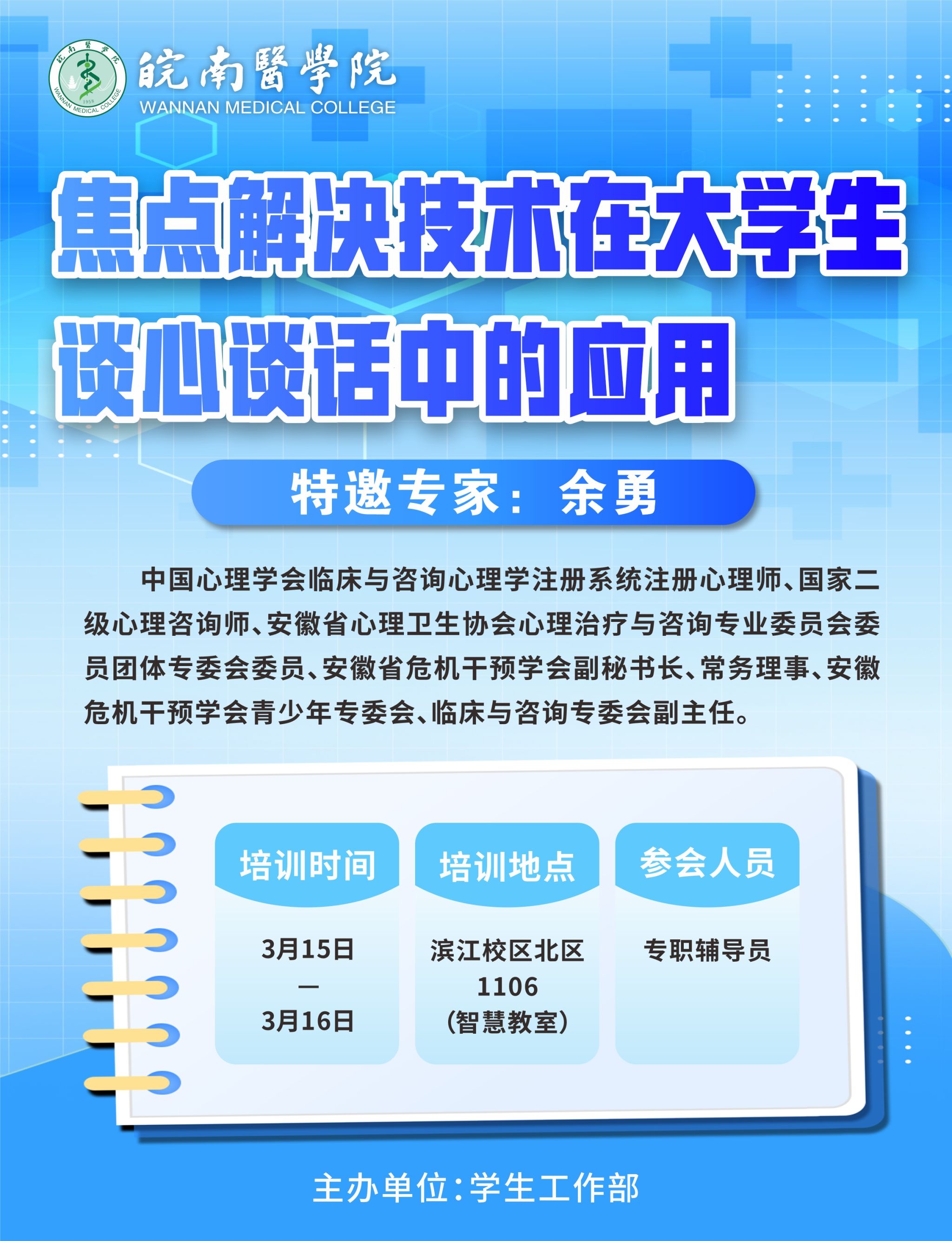 专题培训:焦点解决技术在大学生谈心谈话中的应用